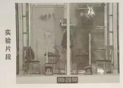 試驗(yàn)工具:木塊、尼龍窗簾、外套、書(shū)籍、書(shū)包、木椅、玩具、塑料風(fēng)扇、收音機(jī)、記事本、花瓶、垃圾桶、花等,置于防火玻璃背面,兩者設(shè)置只有玻璃不同,其余配置完全相同。